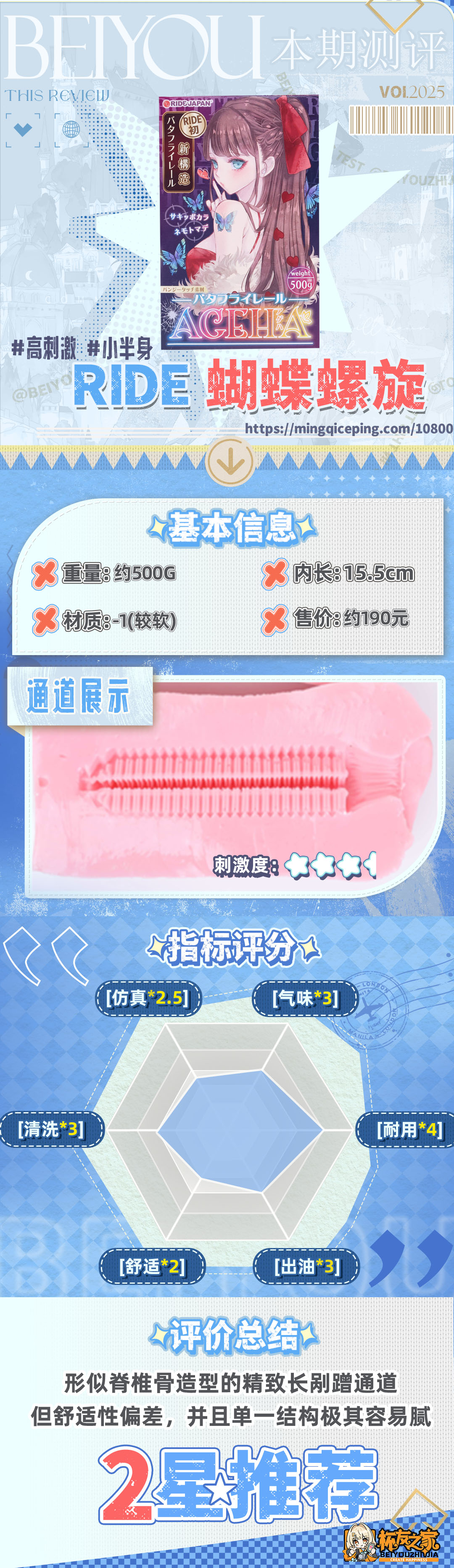 那么这期给大伙带来的是RJ【蝴蝶螺旋】的评测,一款采用RJ软料,主打进阶刺激剐蹭结构的杯子。废话不多说咱们直接开冲!