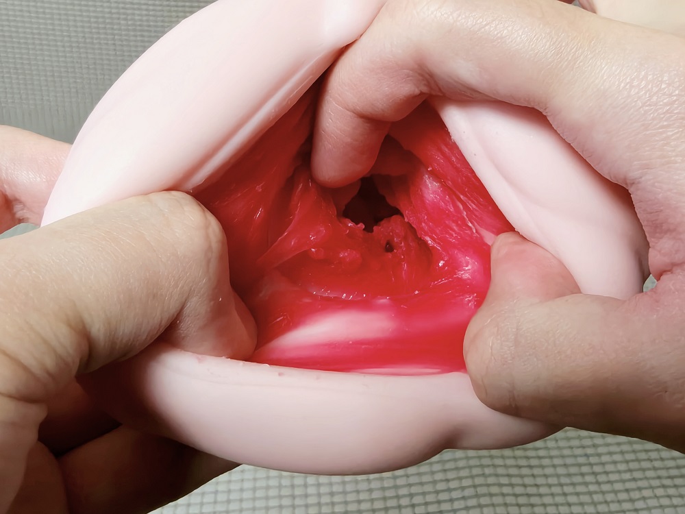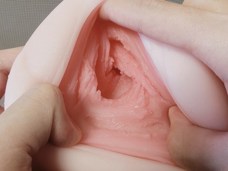 整个手指在刚进入时仿佛杯杯里面是空的一样,再往里摸到中段才能感觉得到杯杯里面的肉瓣纹理