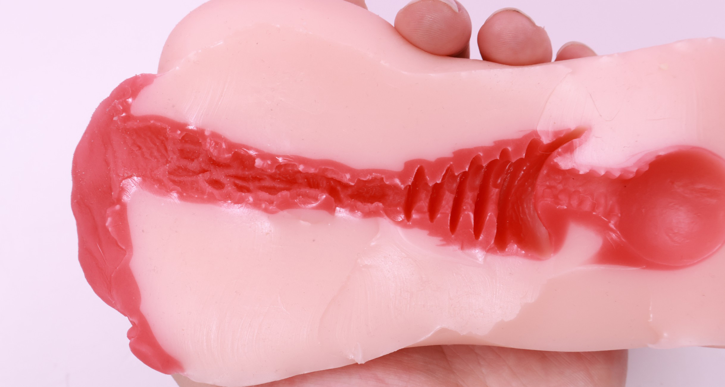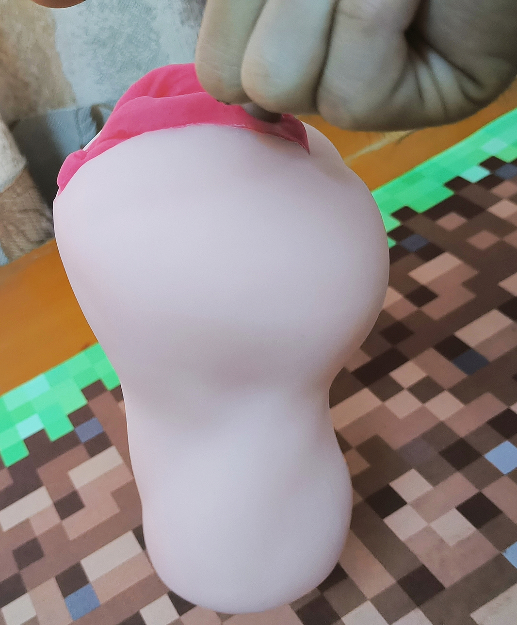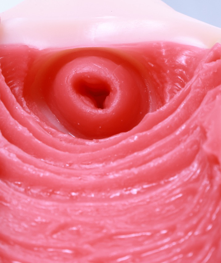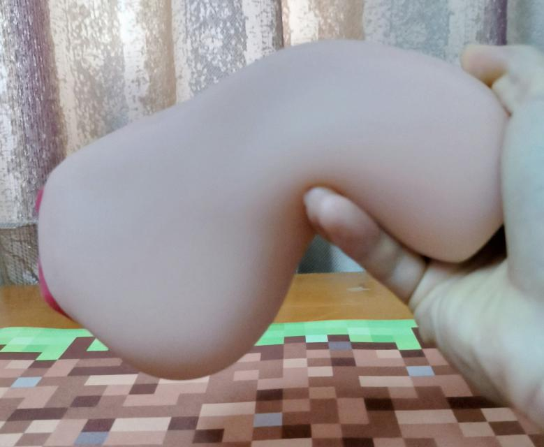 而握住杯顶的宫口部分会有股比较硬的手感,且在揉捏时会有空气排出吸入的感觉,“吧唧吧唧”的声音有点涩琪