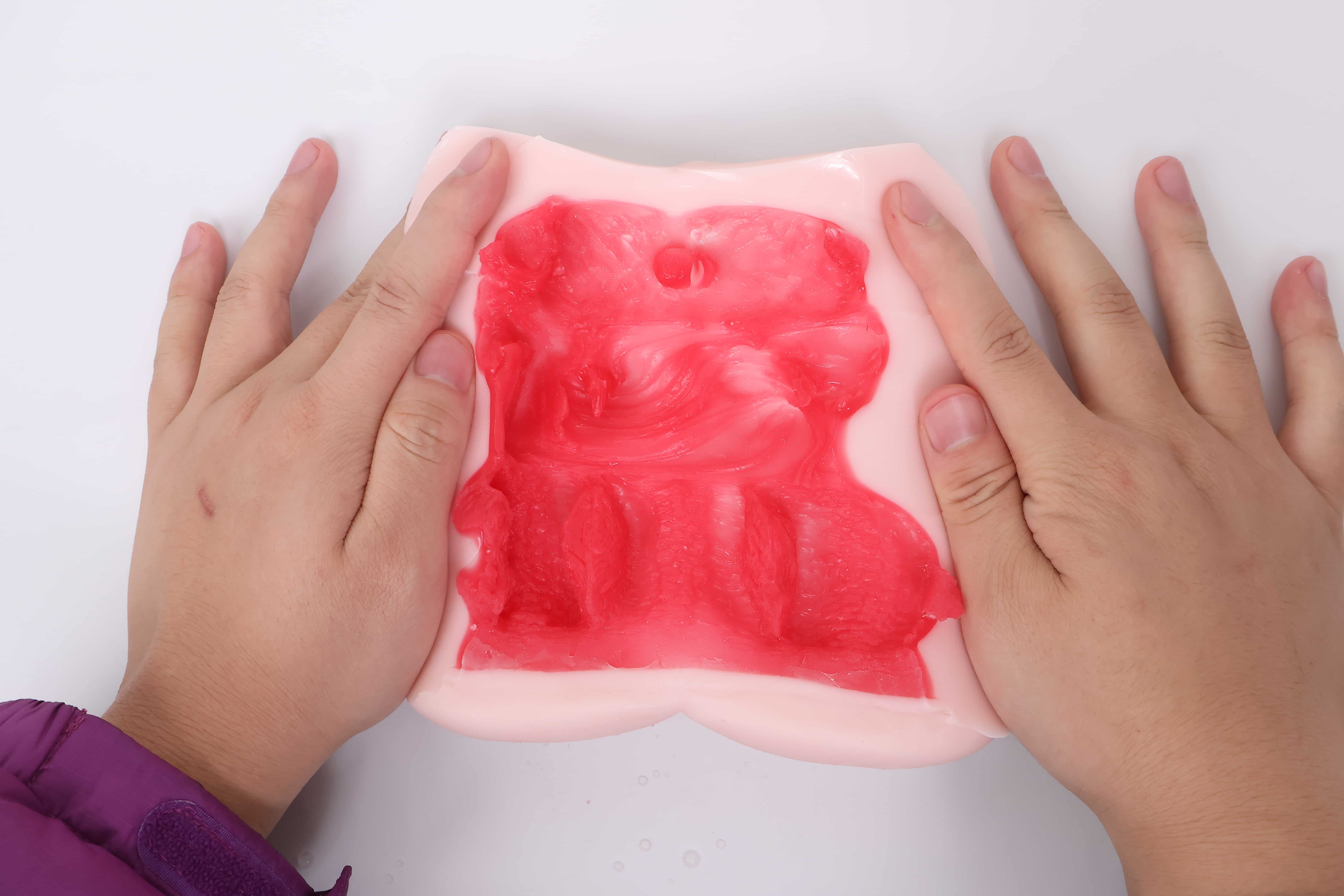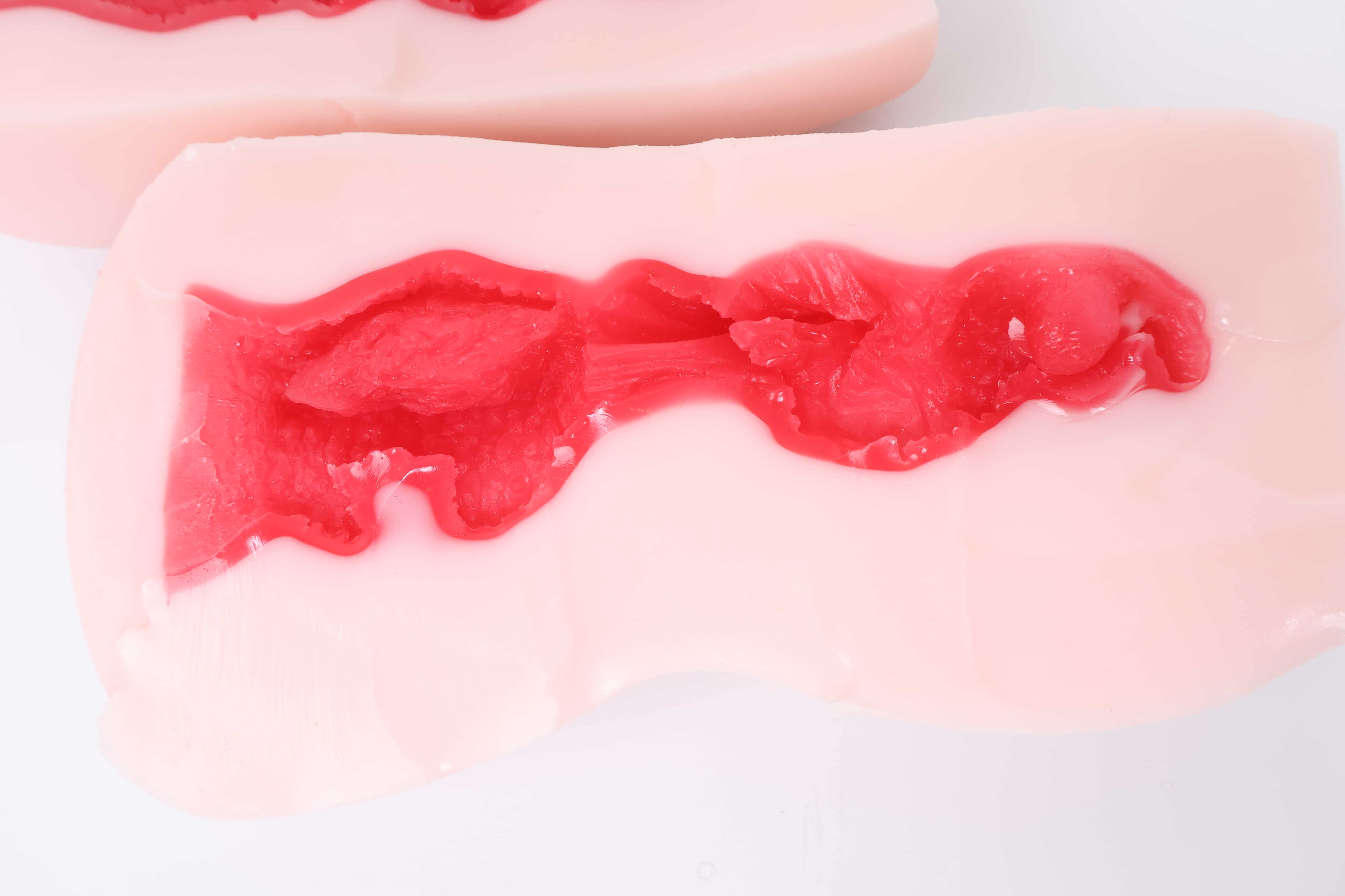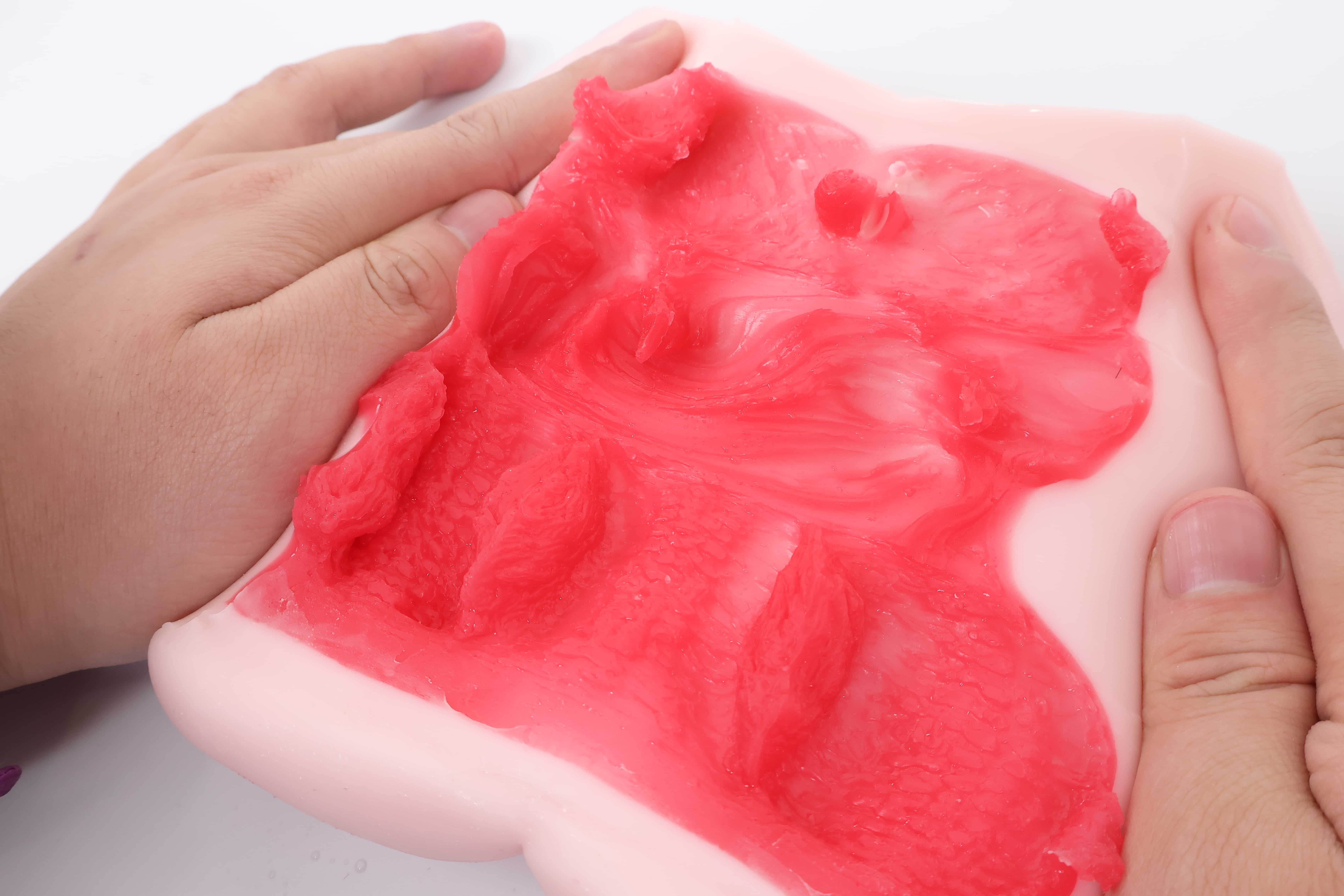 通道长度约为13cm,内部大概是为了做出“大姨妈来的感觉”而特意做成的鲜红色通道,硬度为0级