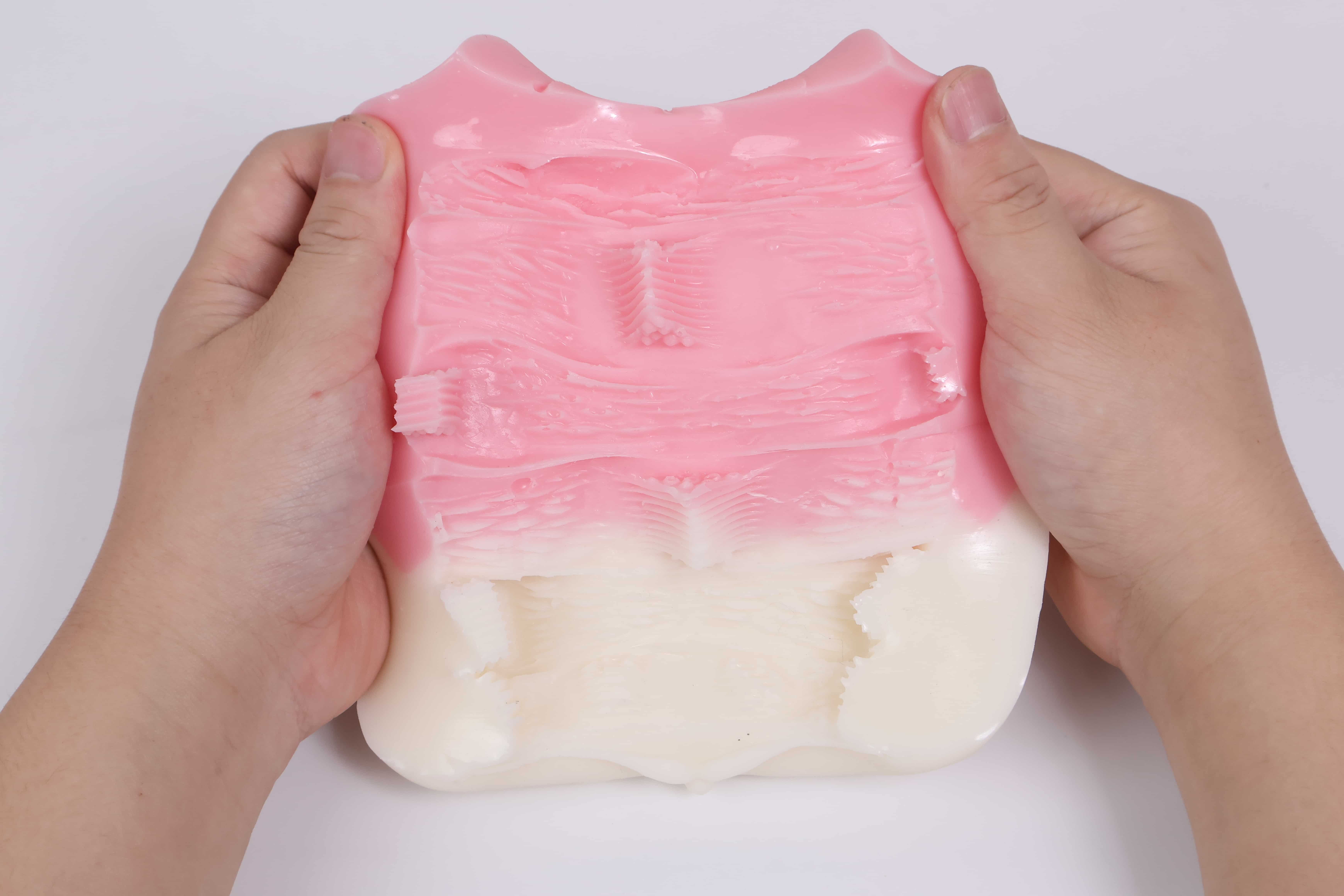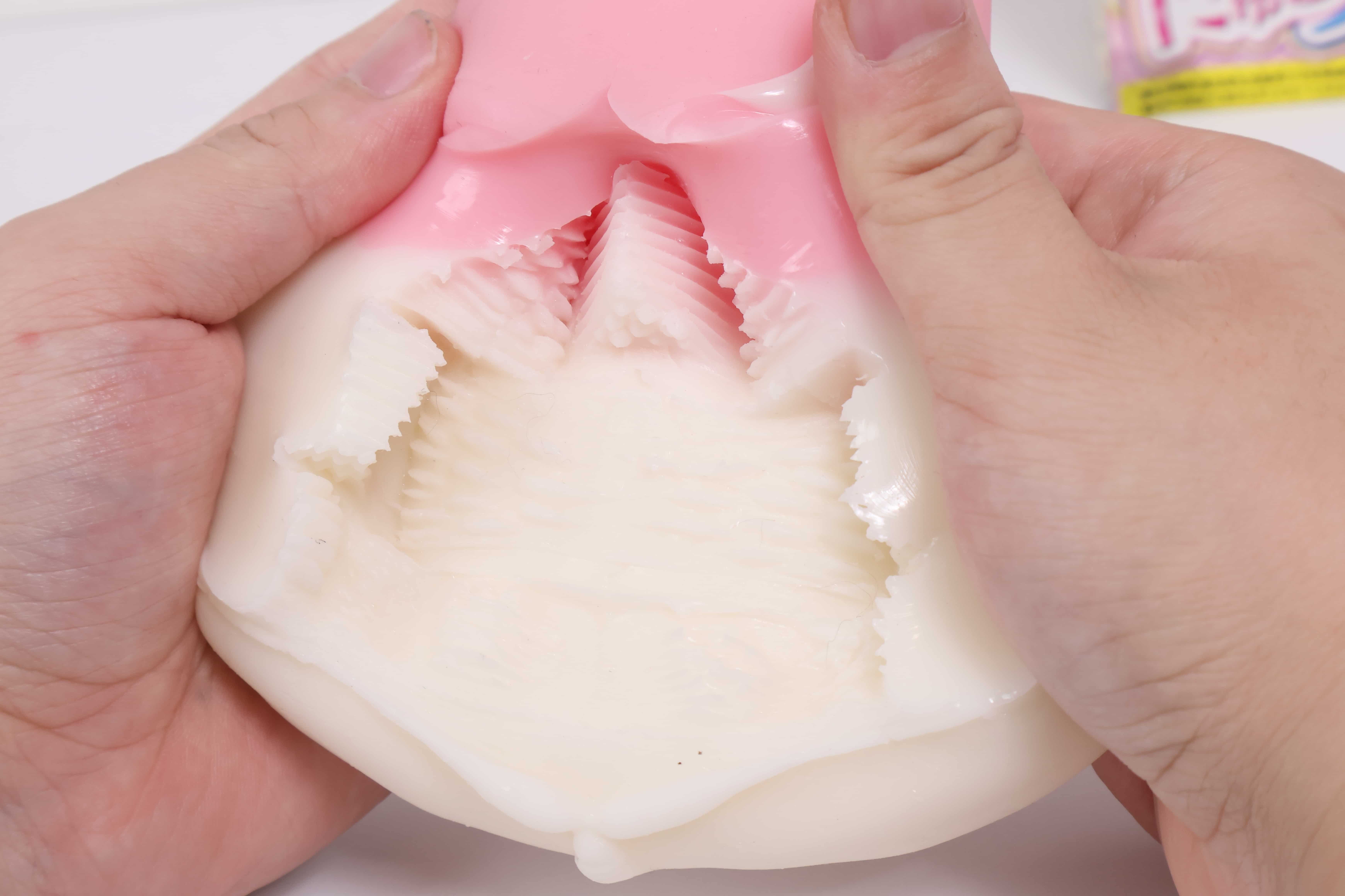 略微排气后由于巨型肉柱挤压效果太过猛烈,在白色材料到粉色材料之间的过渡部分会让我有种强烈的顿挫感,更像是秘境欲情末端子宫结构,像泥头车创过来一样的冲击压迫