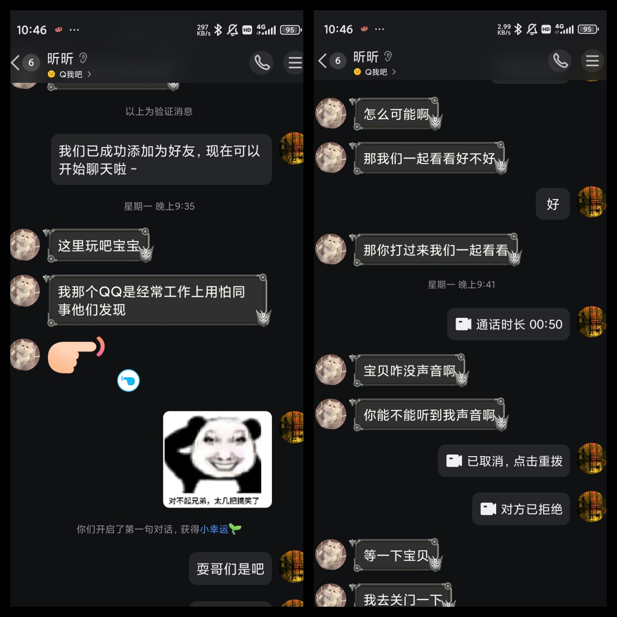 加上好友后,她还我发了好多涩涩视频,说她们圈内玩这个,如果看我看顺眼了把我也拉进去玩