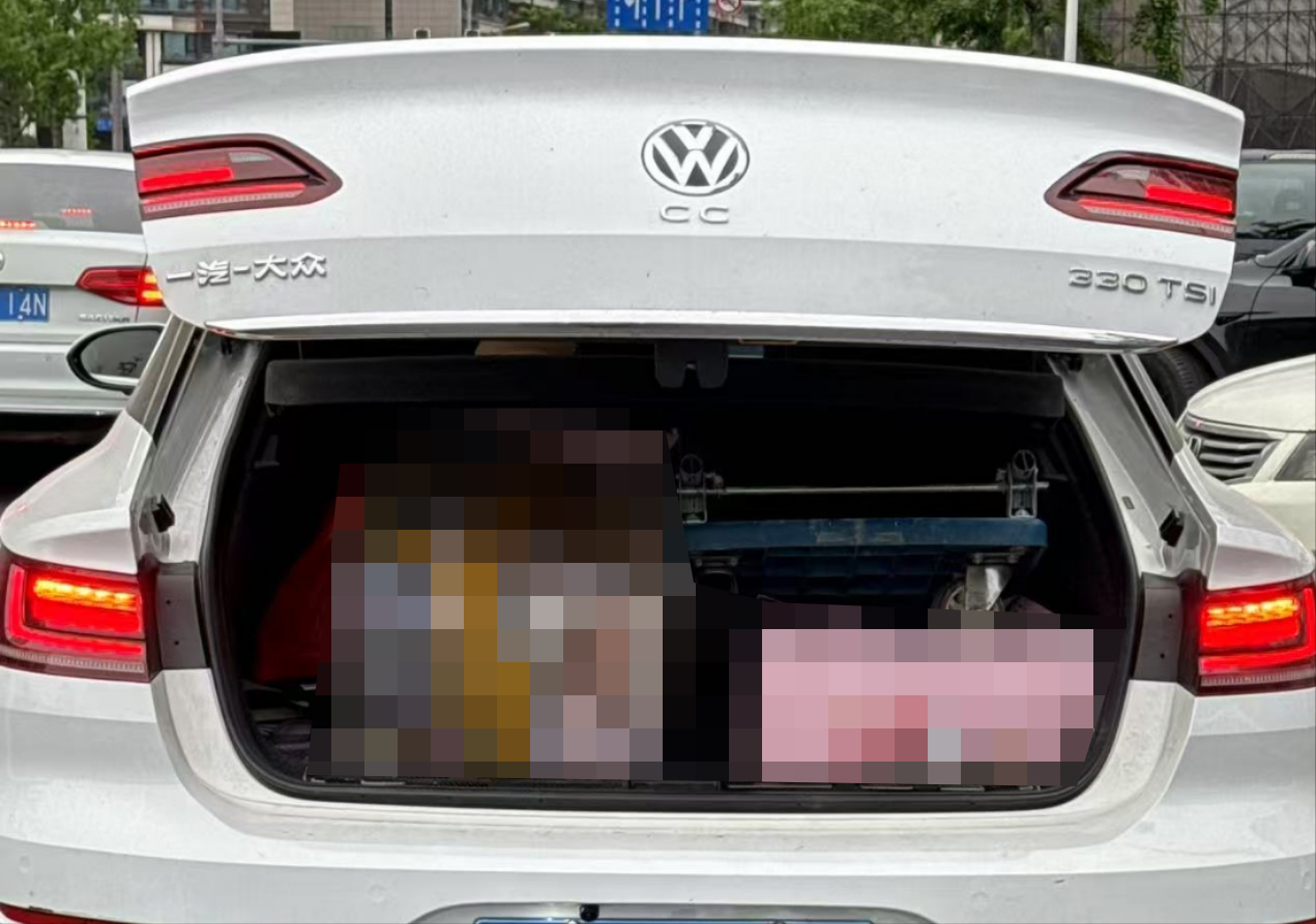 我下楼一看人都傻了,真的是满满一车杯子,后备箱挤得关都关不上(下图是实拍),他跟我说就这样一直从他家开到我家