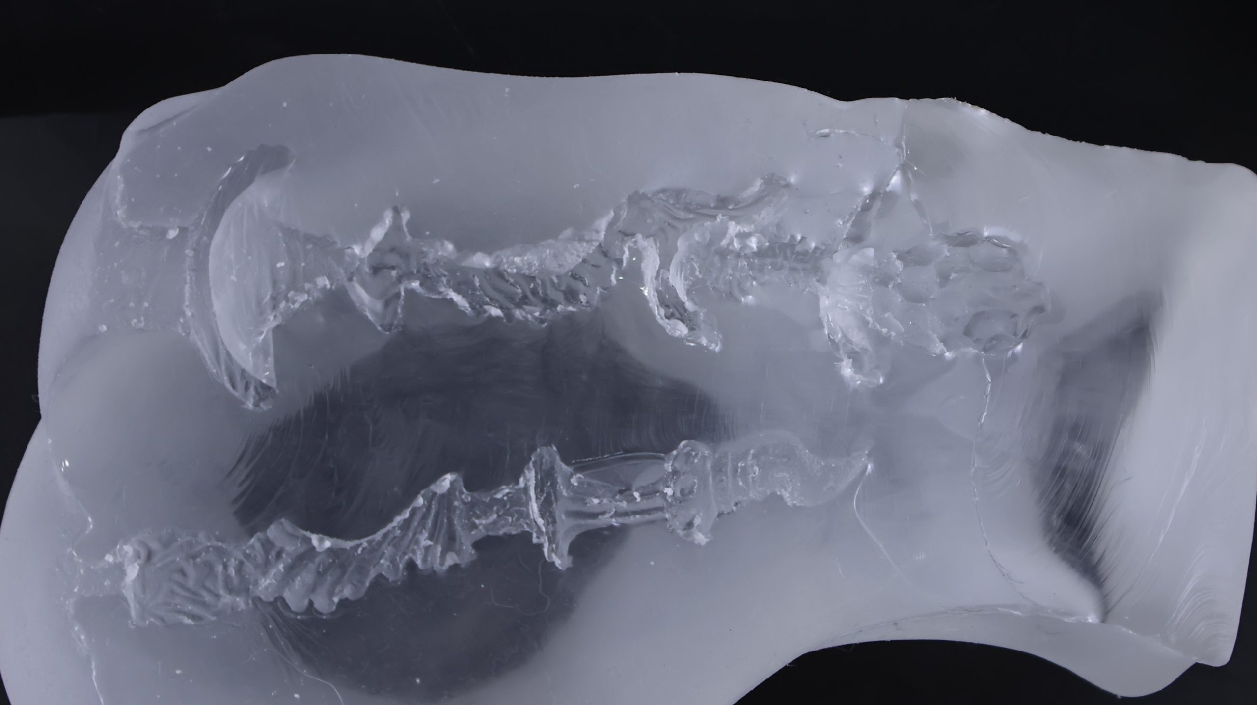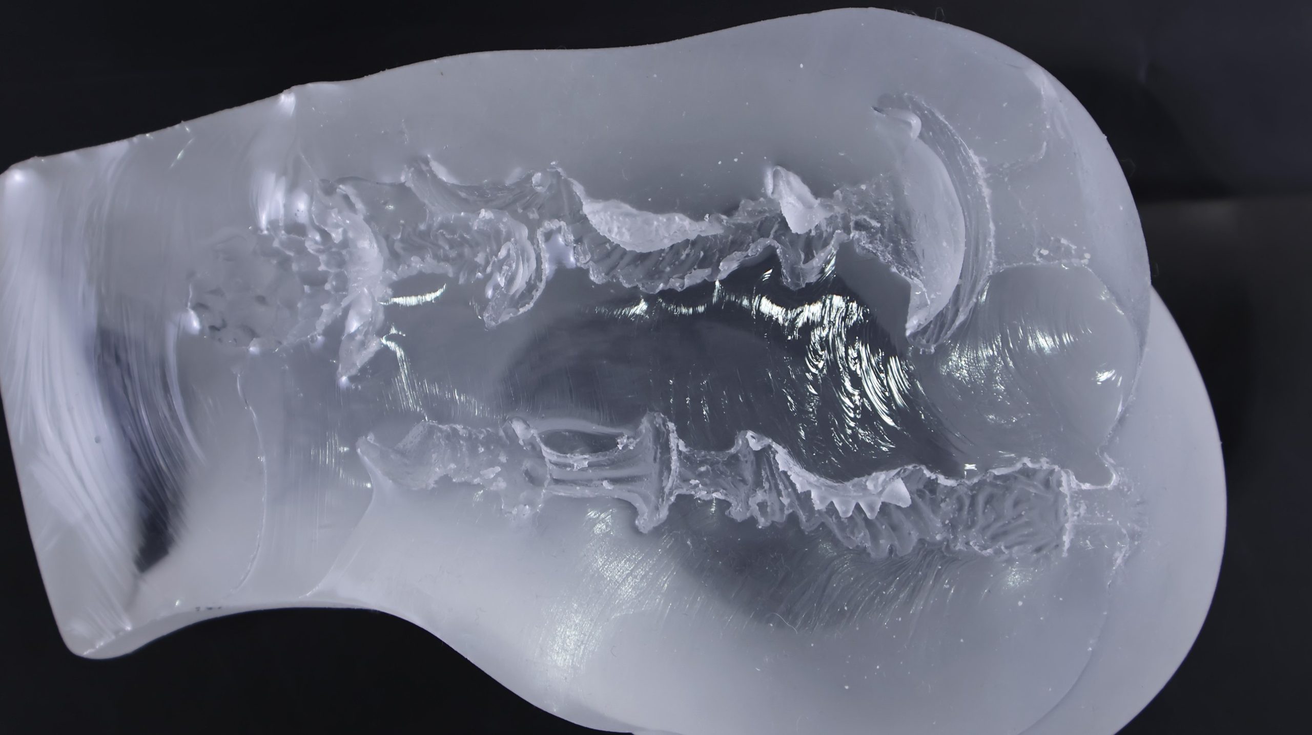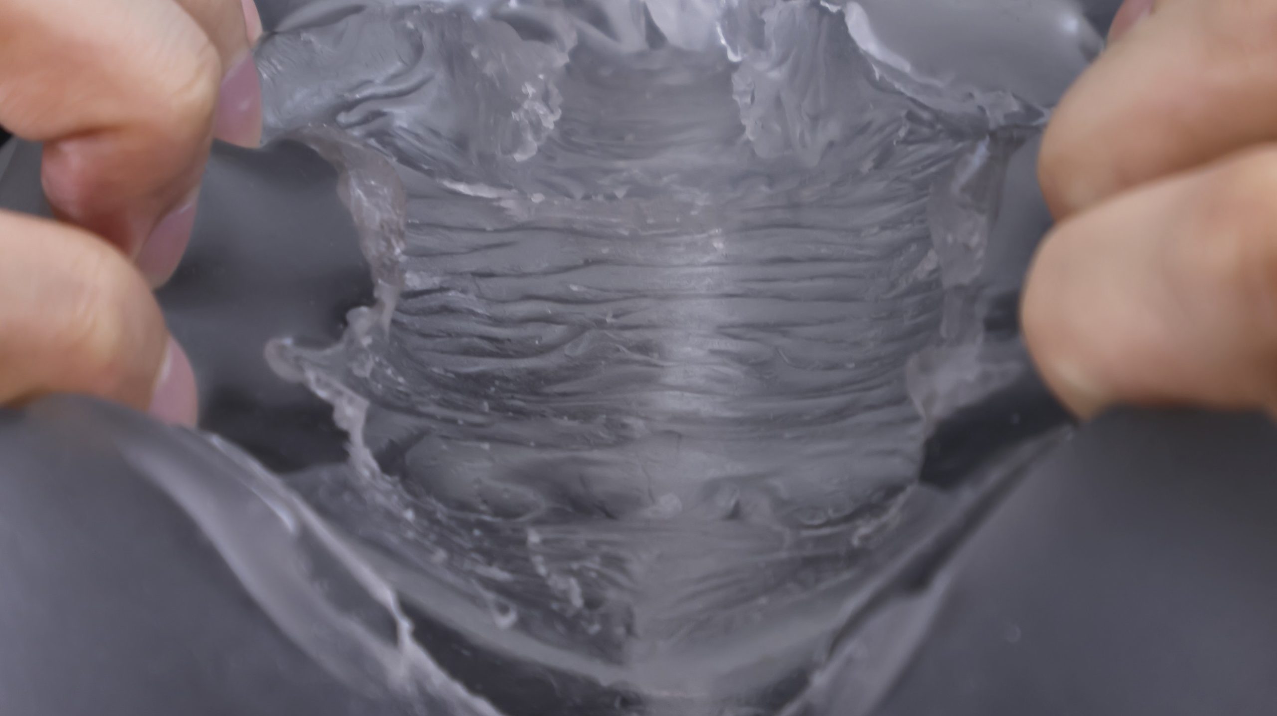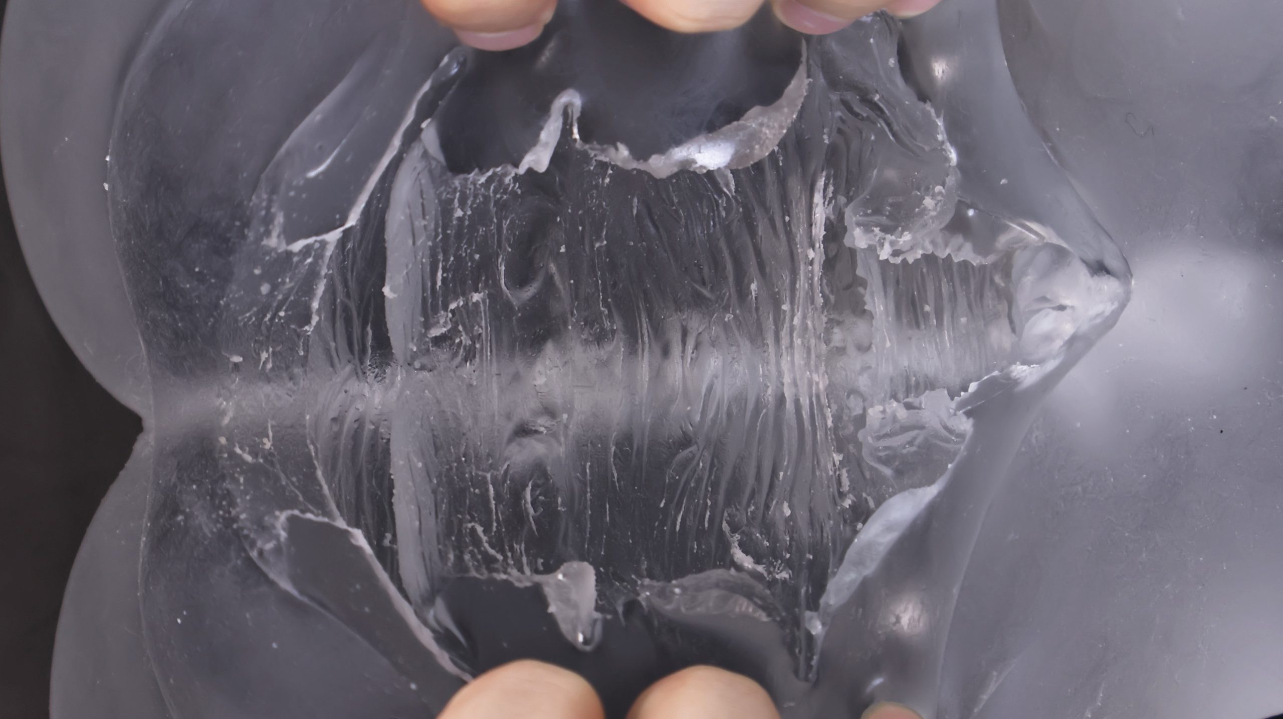 臀模通体透明,从外面就能看到通道口的一圈软胶,在白色背景下不太清晰。